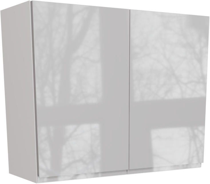 This is a 900mm handleless high gloss light grey wall unit with two gloss light grey jayline doors. The unit is flat packed and ready for easy assembly. This listing includes the following parts:
