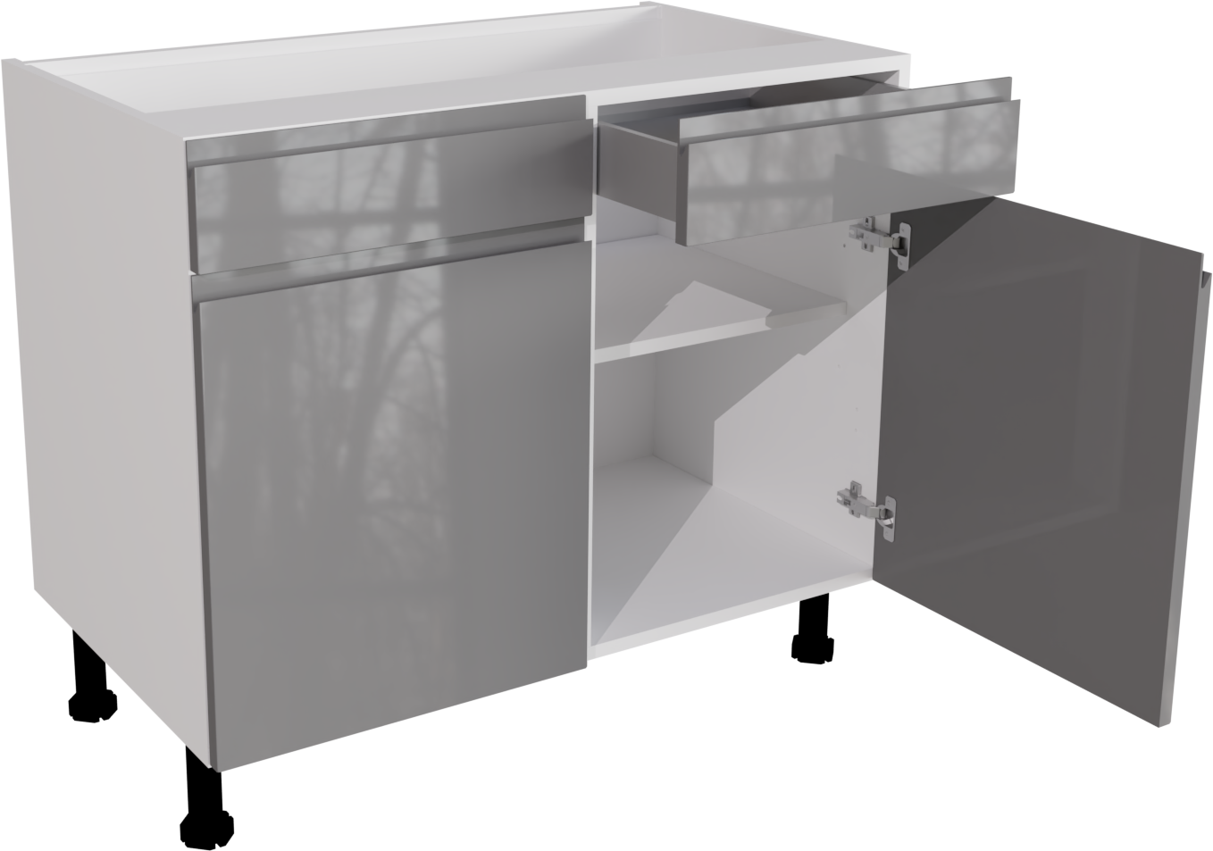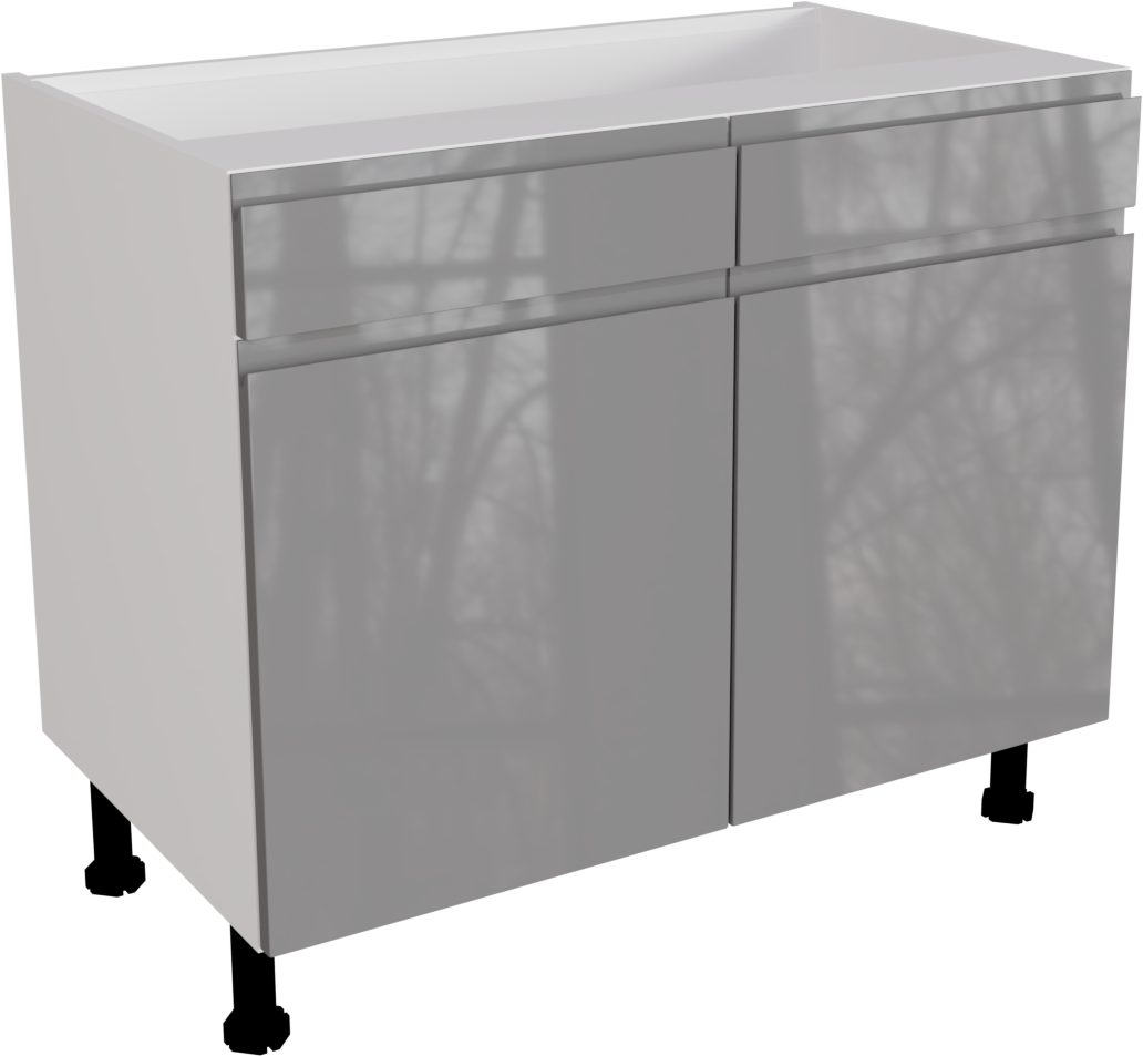 This is a handleless 1000mm high gloss dust grey drawer line kitchen base unit. It includes the cabinet, high gloss dust grey jayline doors and drawer fronts. This listing includes the following parts: