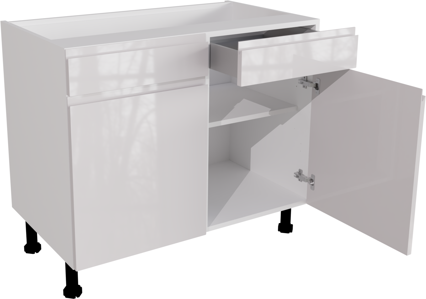 This is a handleless 1000mm high gloss white drawer line kitchen base unit. It includes the cabinet, high gloss white jayline doors and drawer fronts. This listing includes the following parts:
