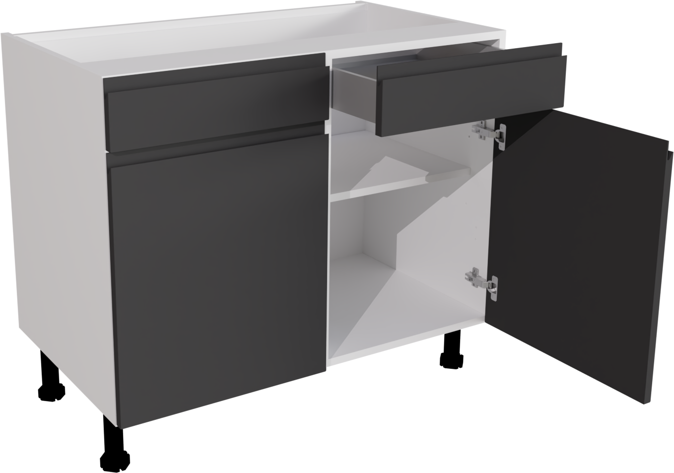 The 1000mm Handleless Matt Graphite Kitchen Drawer Line Base Unit, meticulously crafted in Britain, exemplifies modern sophistication with its sleek design and premium matt graphite finish, ideal for contemporary kitchen settings. Offering generous storage space and seamless integration into any layout, it strikes the perfect balance between functionality and elegant aesthetics. This listing includes the following parts: