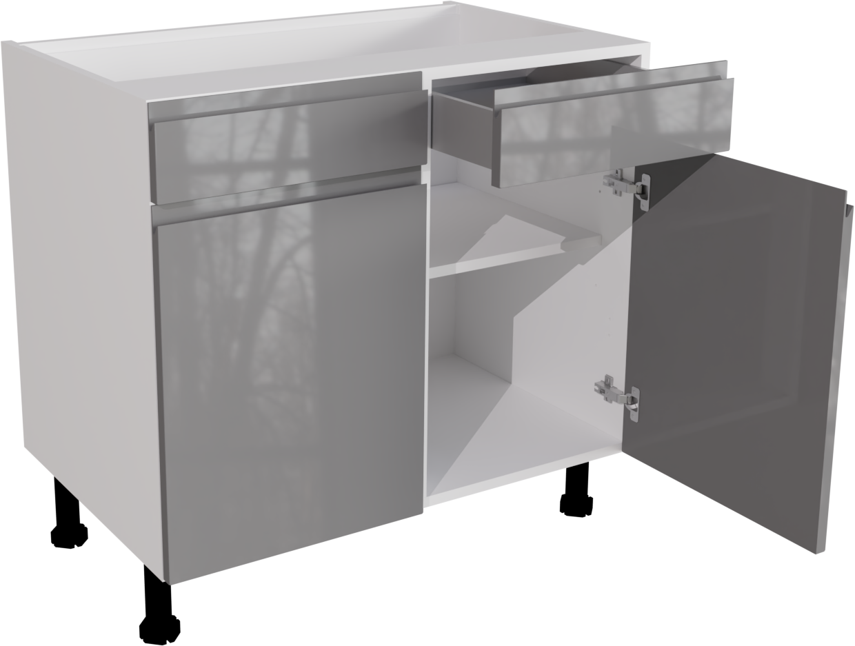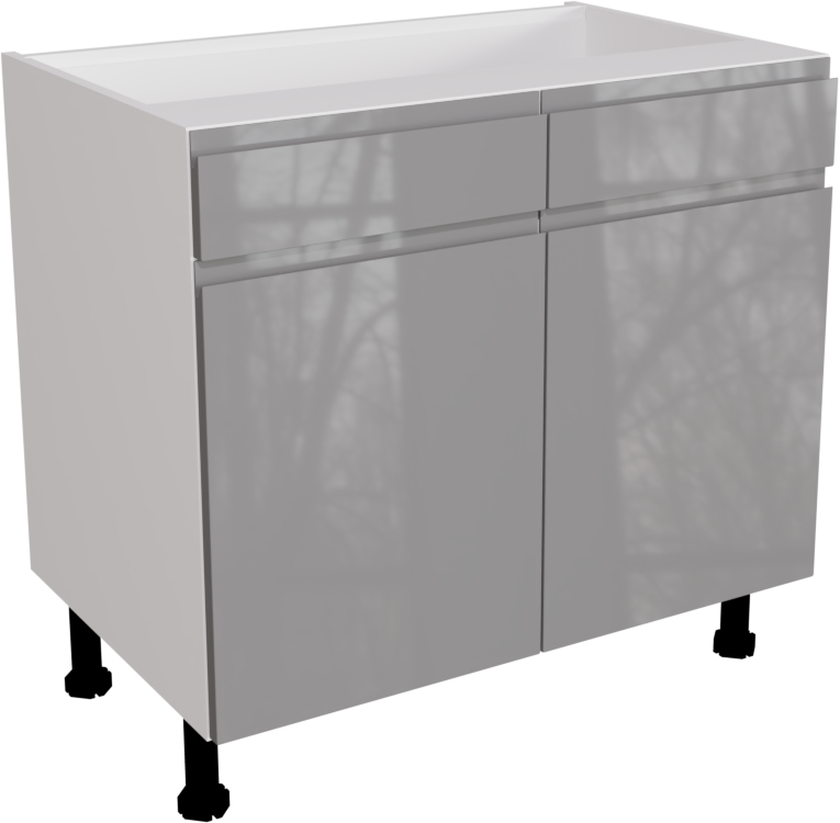This is a handleless 900mm high gloss dust grey kitchen base drawer line unit. It includes a 900mm matt cabinet, available in a number of different colours. It also includes two high gloss dust grey jayline doors and two high gloss dust grey drawer fronts. This listing includes the following parts: