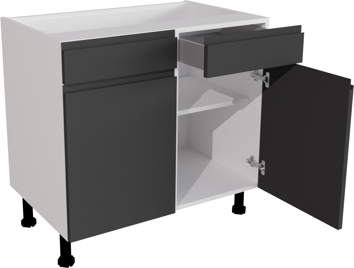 The 900mm Handleless Matt Graphite Kitchen Drawer Line Base Unit, proudly crafted in Britain, embodies modern sophistication with its sleek design and premium matt graphite finish, ideal for contemporary kitchen settings. Offering ample storage space and seamless integration into any layout, it combines functionality with elegant aesthetics. This listing includes the following parts: