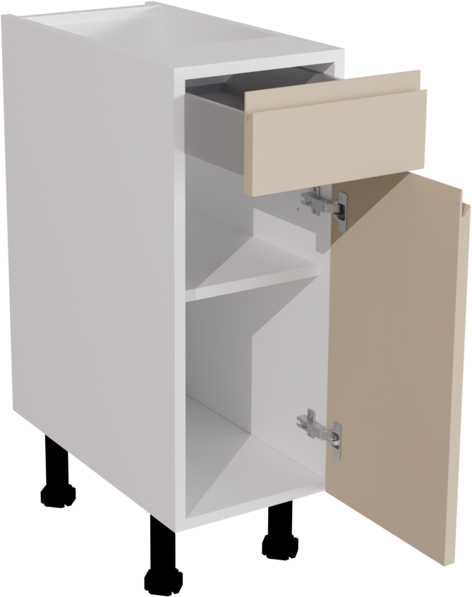 The 300mm Handleless Matt Cashmere Kitchen Drawer Line Base Unit offers compact yet efficient storage for modern kitchens. Meticulously crafted, this unit seamlessly integrates into contemporary design while providing convenient drawer storage for culinary essentials, ensuring both functionality and style in your culinary environment. This listing includes the following parts: