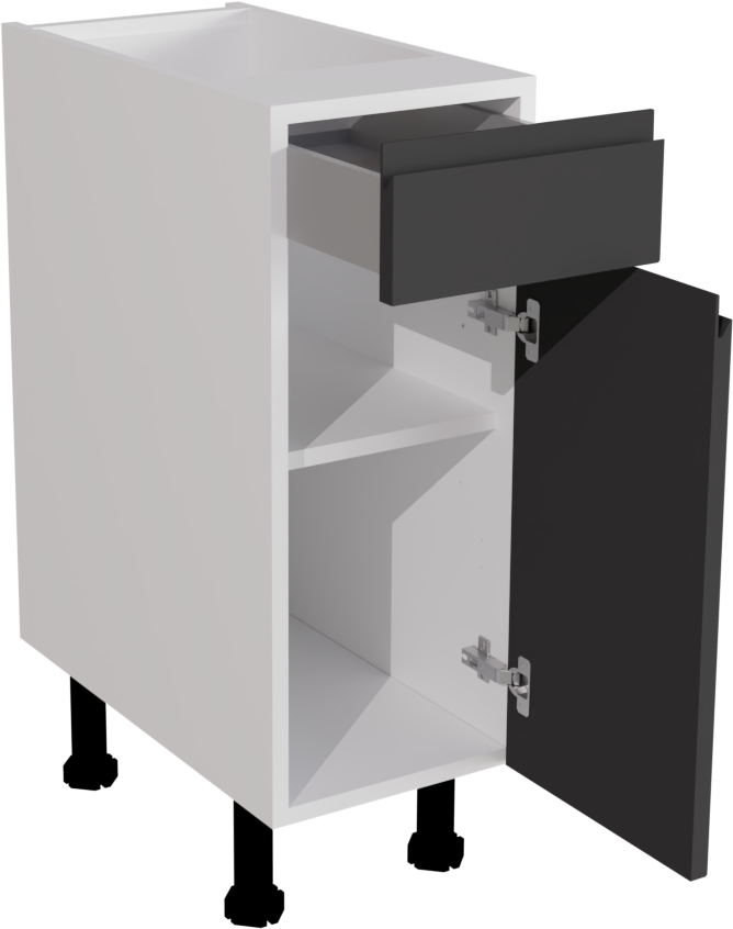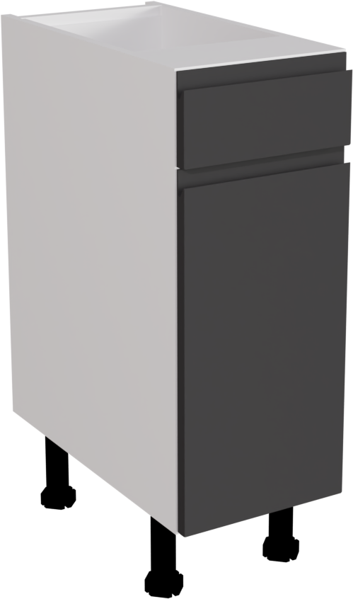 The 300mm Handleless Matt Graphite Kitchen Drawer Line Base Unit, made in Britain, offers sleek, modern design with its handleless feature and matt graphite finish, perfect for contemporary kitchen spaces. Its compact size provides efficient storage solutions while maintaining an elegant aesthetic. This listing includes the following parts: