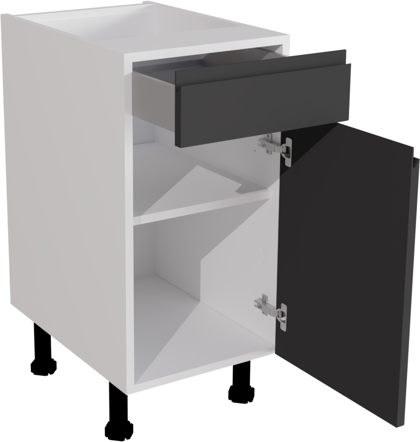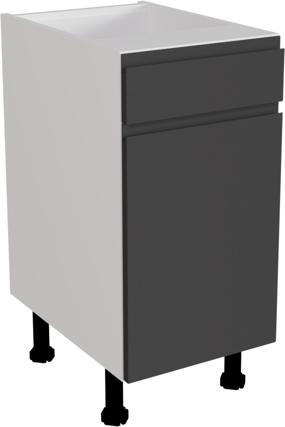 The 400mm Handleless Matt Graphite Kitchen Drawer Line Base Unit, proudly made in Britain, showcases a contemporary design with its sleek handleless feature and sophisticated matt graphite finish, ideal for modern kitchen settings. Offering ample storage capacity within its compact frame, it seamlessly combines functionality with elegance. This listing includes the following parts: