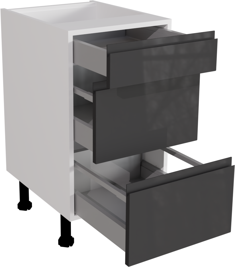 Handleless Gloss Graphite 450 3-Drawer Base - JGGR-3DU450