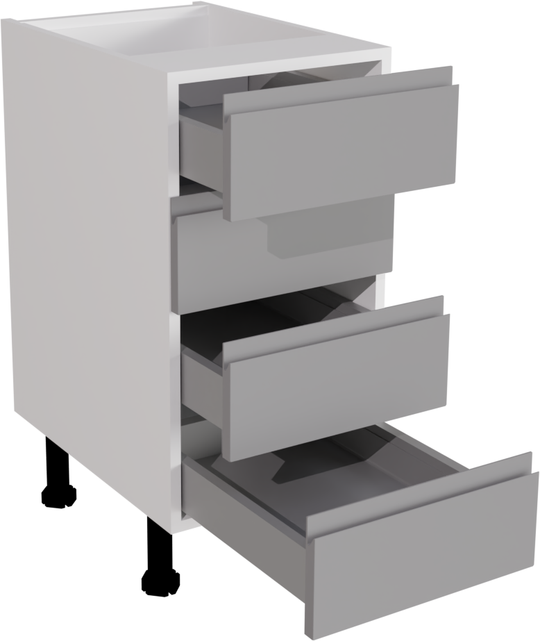 The Handleless Matt Dust Grey 400 4-Drawer Base unit combines practicality with sleek design, ideal for contemporary kitchens. Its handleless feature and sophisticated dust grey finish offer both functionality and style, providing efficient storage solutions while maintaining a modern aesthetic.