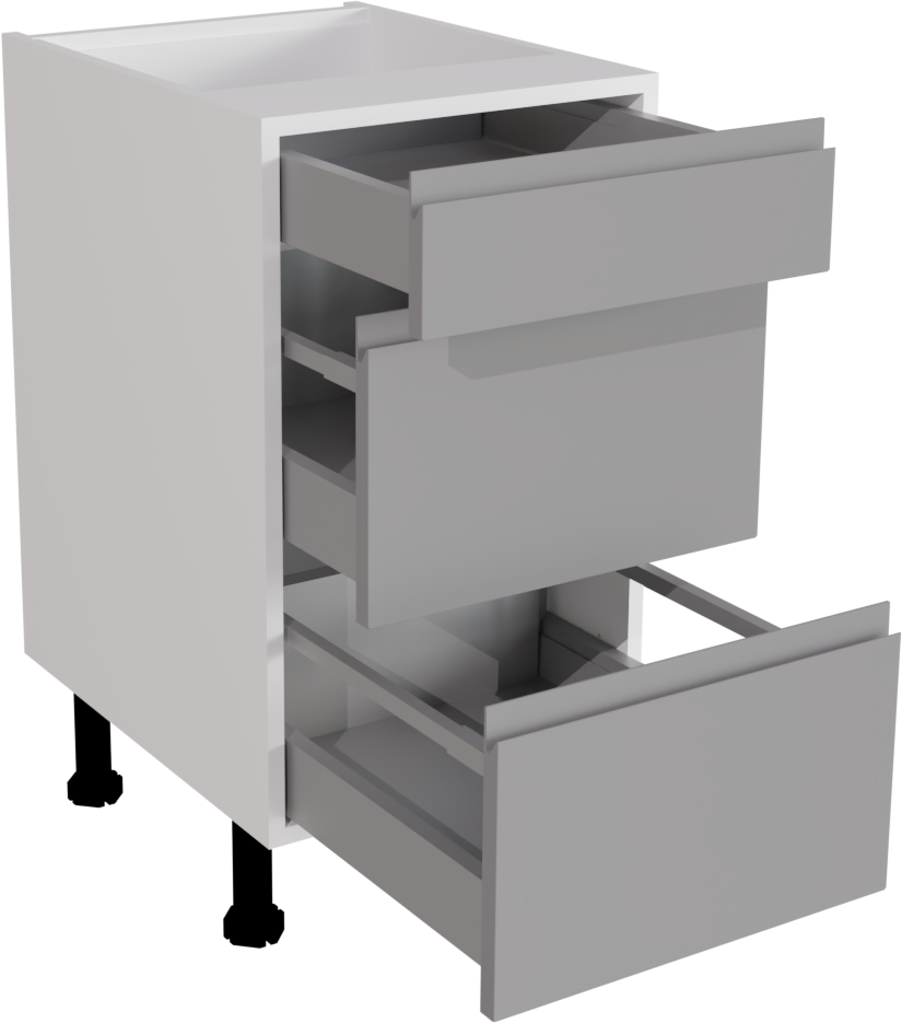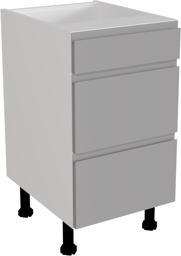 The Handleless Matt Dust Grey 450 3-Drawer Base unit blends contemporary design with practicality, offering a stylish solution for kitchen storage needs. Its sleek handleless design exudes modernity while providing convenient access to three spacious drawers, enhancing both functionality and aesthetic appeal in any kitchen space.