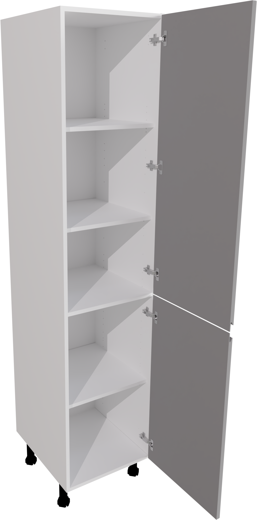 The Handleless Matt Dust Grey 500 Tall Larder Unit combines ample storage capacity with a contemporary aesthetic, perfect for modern kitchen layouts. Its streamlined design and tall profile maximise vertical space efficiency while providing convenient organisation for pantry items or kitchen essentials, ensuring both functionality and sleek visual appeal in your kitchen.