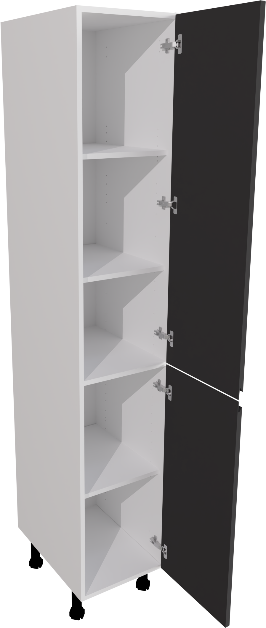 The Handleless Matt Graphite 400 Tall Larder Unit exemplifies modern elegance with its seamless design and minimalist aesthetic, blending seamlessly into any contemporary kitchen. Featuring ample storage space and a handleless construction, this unit offers both functionality and style, making it a practical and stylish choice for optimising storage in any culinary space.