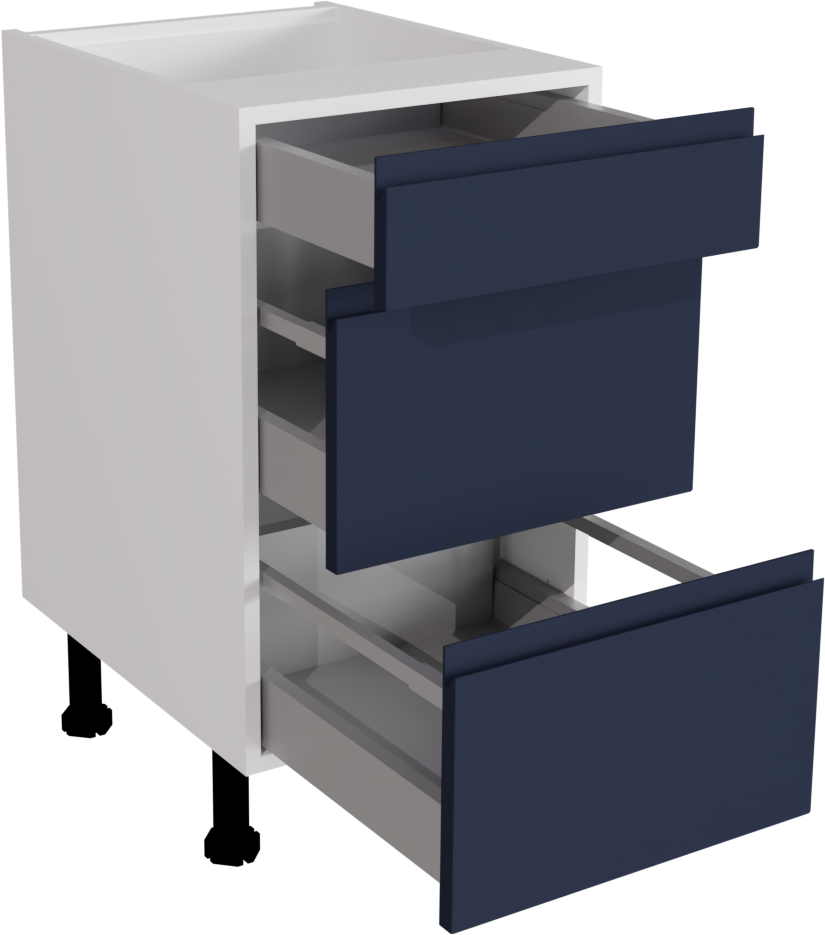 Handleless Matt Indigo Blue 450 3-Drawer Base - JMINB-3DU450