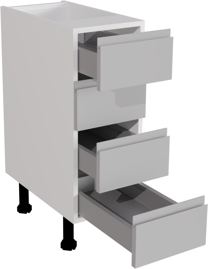 The Handleless Matt Light Grey 300 4-Drawer Base unit provides versatile and efficient storage solutions for modern kitchens. Crafted with precision and featuring a sleek handleless design, it maximises organisation and adds a touch of contemporary style to culinary spaces.