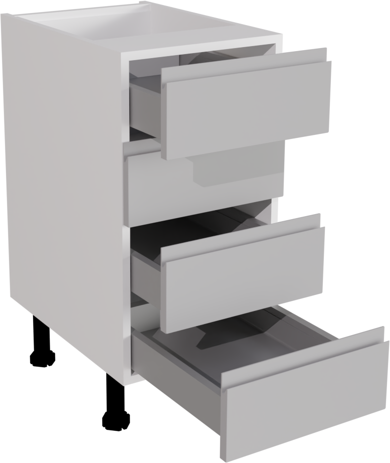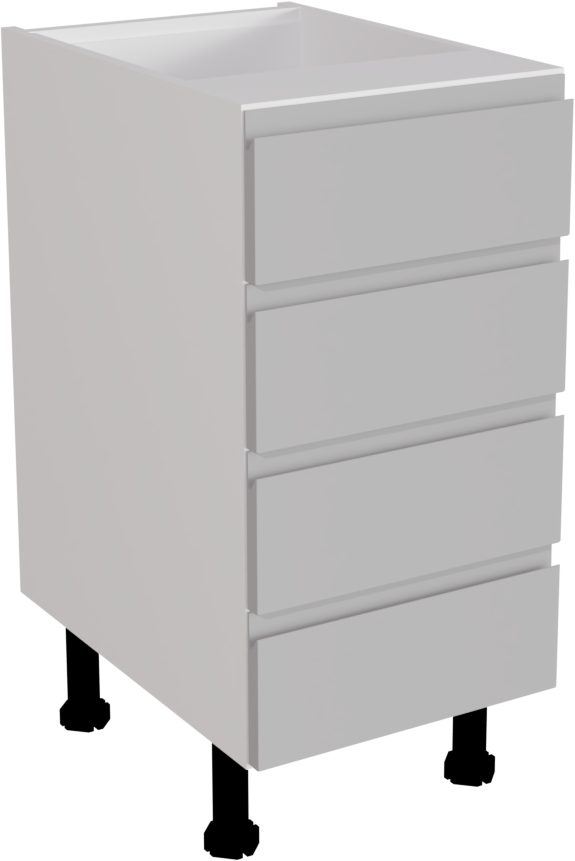The Handleless Matt Light Grey 400 4-Drawer Base unit provides efficient storage and modern design for contemporary kitchens. Crafted with precision and featuring a sleek handleless profile, it optimises organisation while adding a touch of sophistication to culinary spaces.