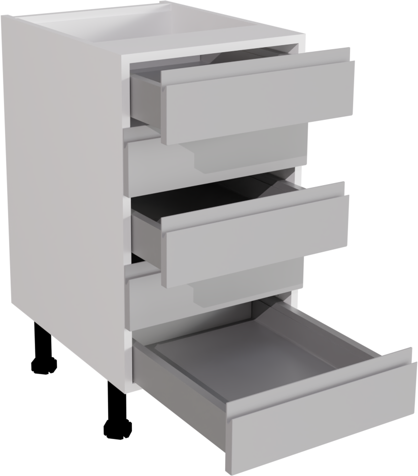 The Handleless Matt Light Grey 450 5-Drawer Base unit offers spacious and organised storage solutions for modern kitchens. Crafted with precision and featuring a sleek handleless design, it maximises functionality while enhancing the contemporary aesthetic of culinary spaces.