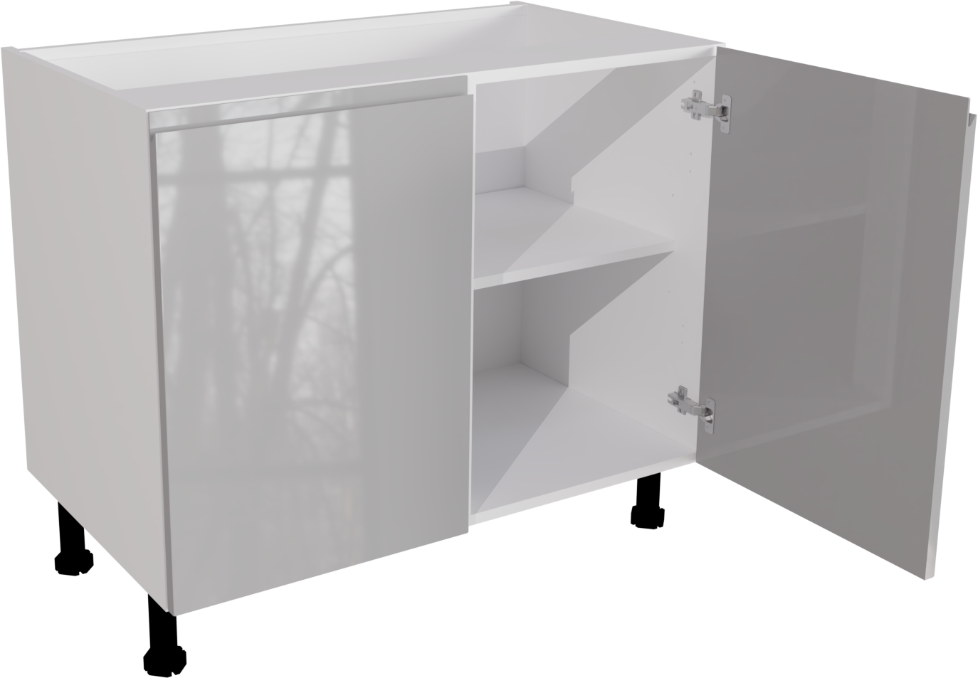 The unit is a matt double base unit with two jayline high gloss light grey kitchen slab doors. The unit is flat packed and ready for easy assembly using the innovative cam and dowel technology. The unit include soft close handles and legs. This listing will include the following parts: