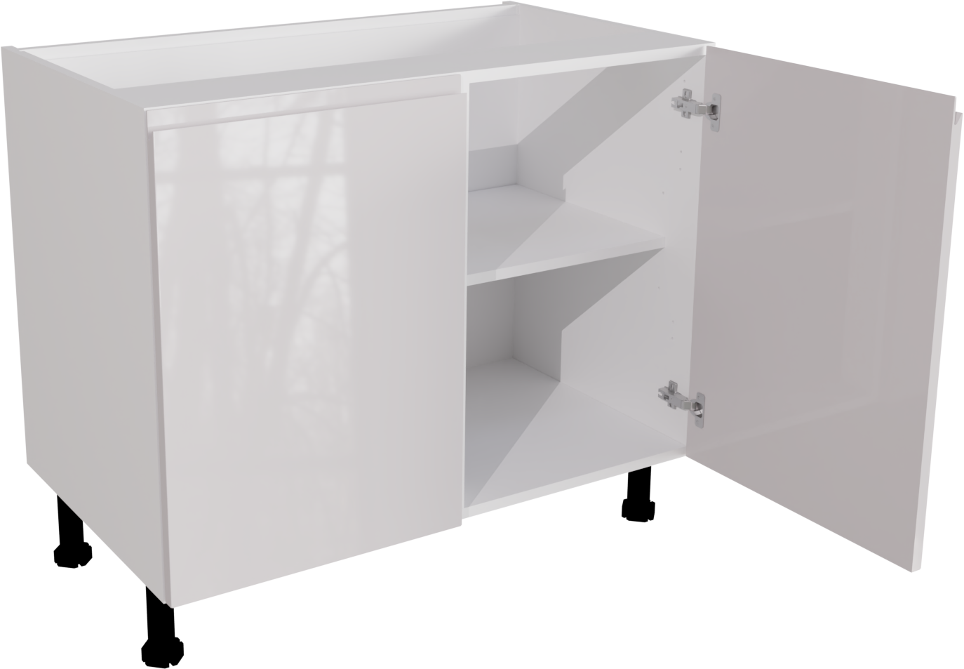 The unit is a matt double base unit with two jayline high gloss white kitchen slab doors. The unit is flat packed and ready for easy assembly using the innovative cam and dowel technology. The unit include soft close handles and legs. This listing will include the following parts: