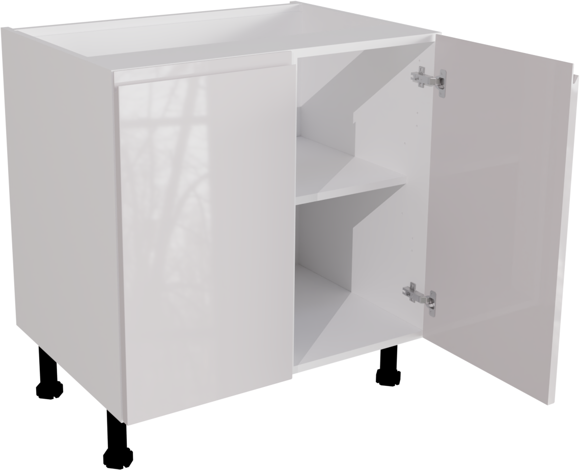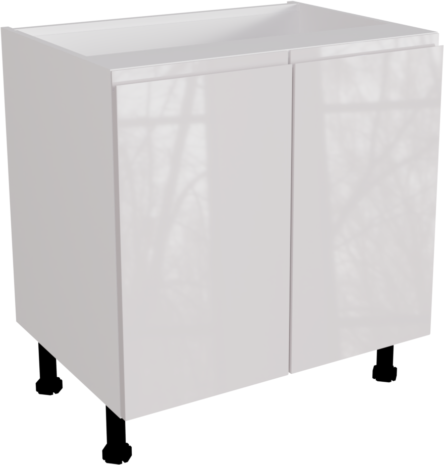 This is a high gloss 800mm wide handless base unit from BA Components. It is a double base unit with two jayline white gloss doors. The cabinet is a matt finish that is flat packed and ready to assemble. It includes the hinges and legs. This listing includes the following parts: