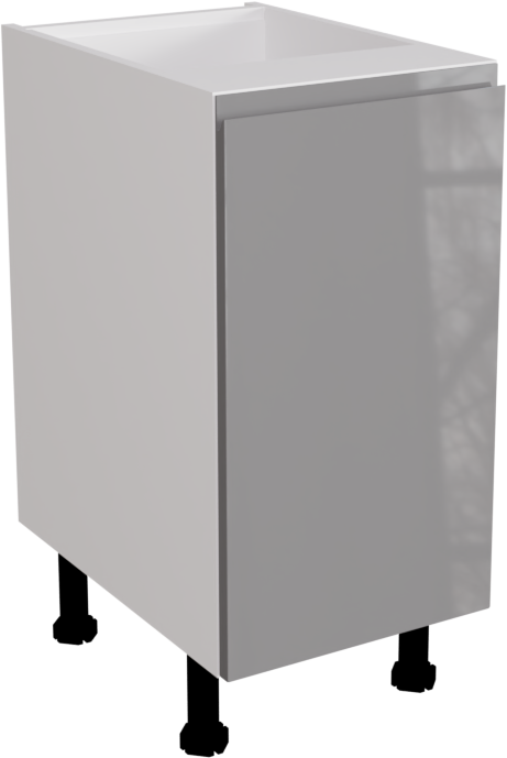 This is a 400mm handleless high gloss dust grey kitchen base unit, available to buy now from Flat Pack Kitchens. It is a matt base cabinet with a jayline high gloss dust grey door. The door is pre-drilled for hinge holes. This listing includes the following parts: