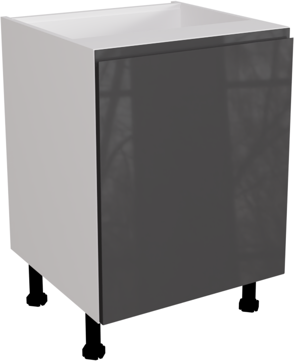 This is a 600mm handleless high gloss graphite kitchen base unit, available to buy now from Flat Pack Kitchens. It is a matt base cabinet with a jayline high gloss graphite door. The door is pre-drilled for hinge holes. This listing includes the following parts:
