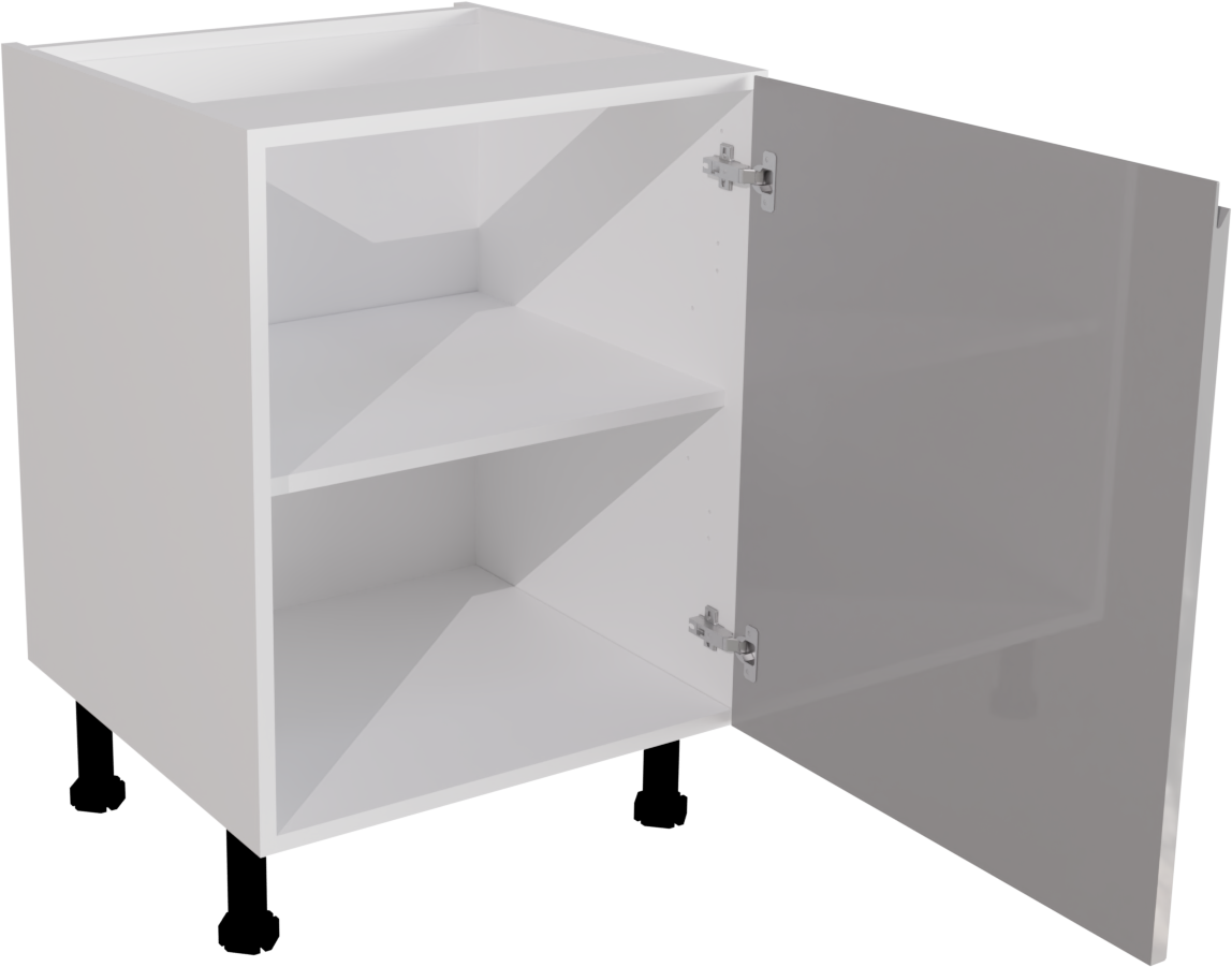 This is a 600mm handleless supergloss light grey kitchen cabinet. It is a 600mm flat packed kitchen cabinet with a 600mm supergloss light grey jayline style kitchen door. This listing includes the following parts: