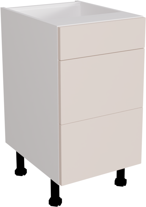 Information: 1 x 720 Base Full Drawer 450 ClicBox White 1 x Ora Supermatt Cashmere Pronto Door 140x446 2 x Ora Supermatt Cashmere Pronto Door 283x446 1 x 450W Atira Standard Drawer 2 x 450W Atira High Sided Drawer