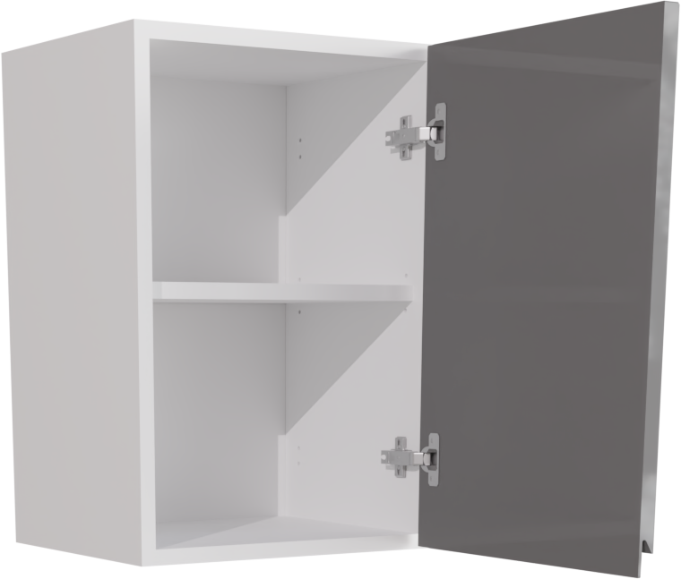 This is a 400mm handleless gloss dust grey short kitchen wall unit (575mm High). It is a short wall cabinet with a high gloss jayline dust grey kitchen door and two soft close hinges. It also includes the wall hanging brackets.