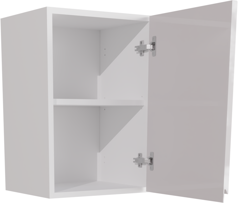 This is a 400mm handleless gloss white short kitchen wall unit (575mm High). It is a short wall cabinet with a high gloss jayline white kitchen door and two soft close hinges. It also includes the wall hanging brackets.