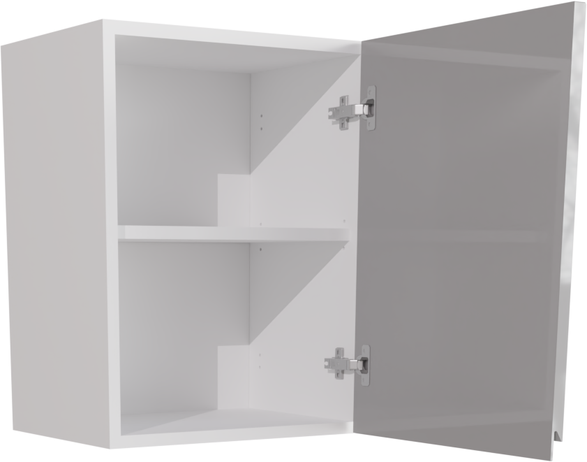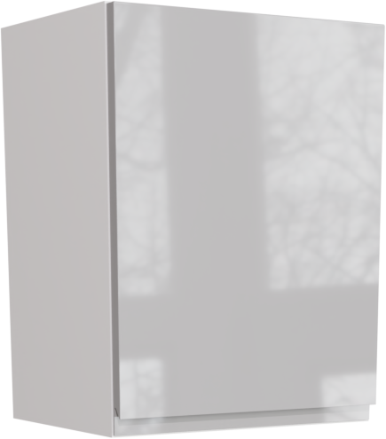This is a 450mm handleless gloss light grey short kitchen wall unit (575mm high) available to buy online now from Flat Pack Kitchens. It includes the wall cabinet, jayline light grey doors and soft-close hinges.