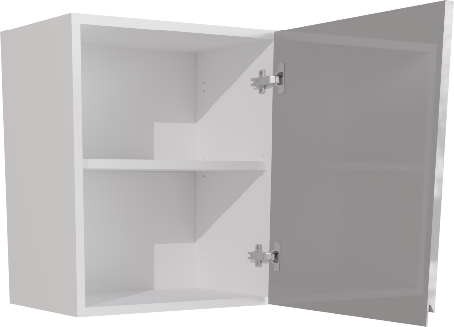This is a 500mm handleless gloss light grey short kitchen wall unit (575mm High). It includes the 500mm short wall unit, a high gloss light grey jayline door and soft-close hinges.