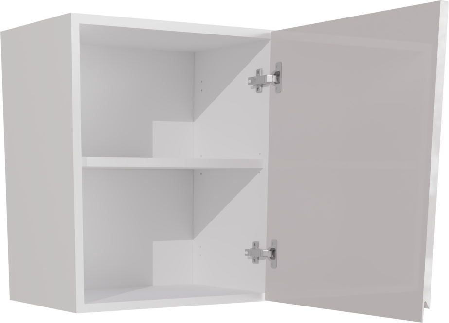 This is a 500mm handleless gloss white short kitchen wall unit (575mm High). It includes the 500mm short wall unit, a high gloss jayline door and soft-close hinges.