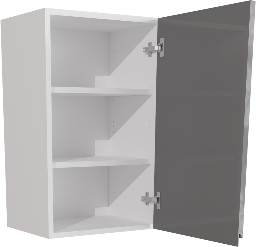 This is a handleless 450mm gloss dust grey kitchen wall unit. This listing includes the following parts: