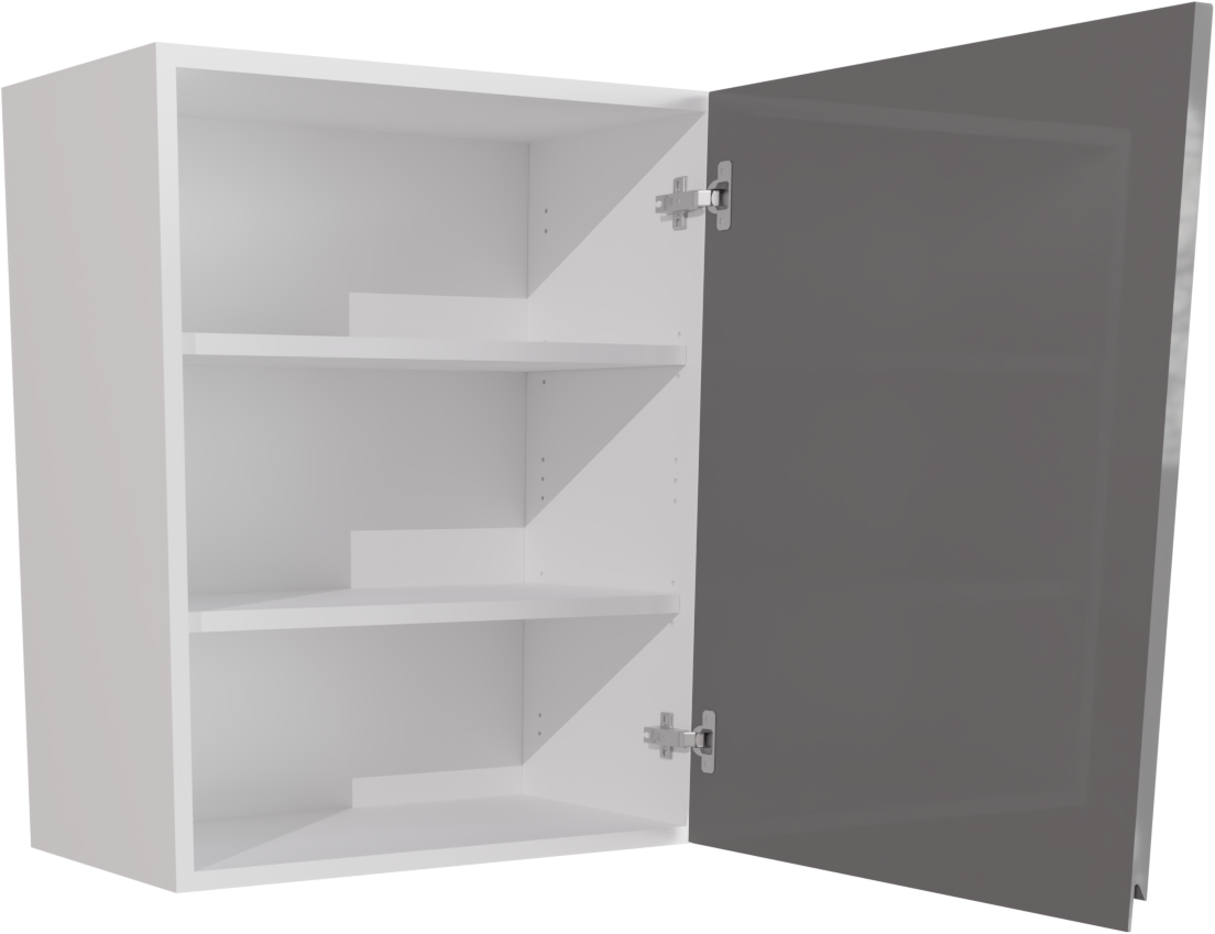 This is a 600mm handleless high gloss dust grey kitchen wall unit. The unit is flat packed and easy to assemble. It includes a jayline high gloss dust grey door, two shelves, wall hanging fixings and two soft close hinges. This listing includes the following parts: