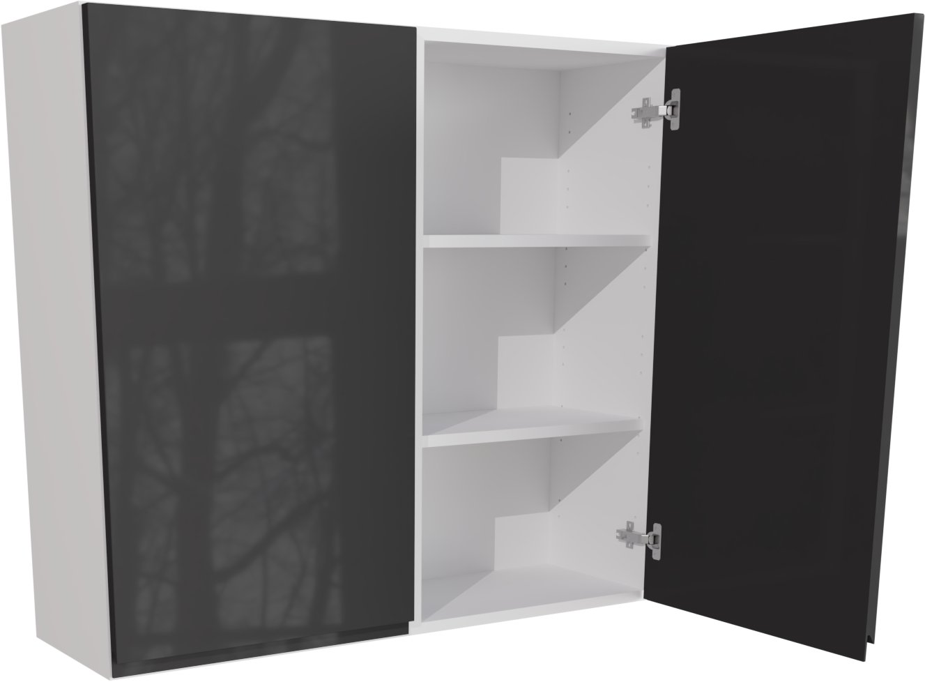 This is a 1000mm handleless, gloss graphite kitchen tall wall unit (900mm High). It is a tall 1000mm matt kitchen wall cabinet with two jayline gloss graphite doors. The unit includes the following parts: