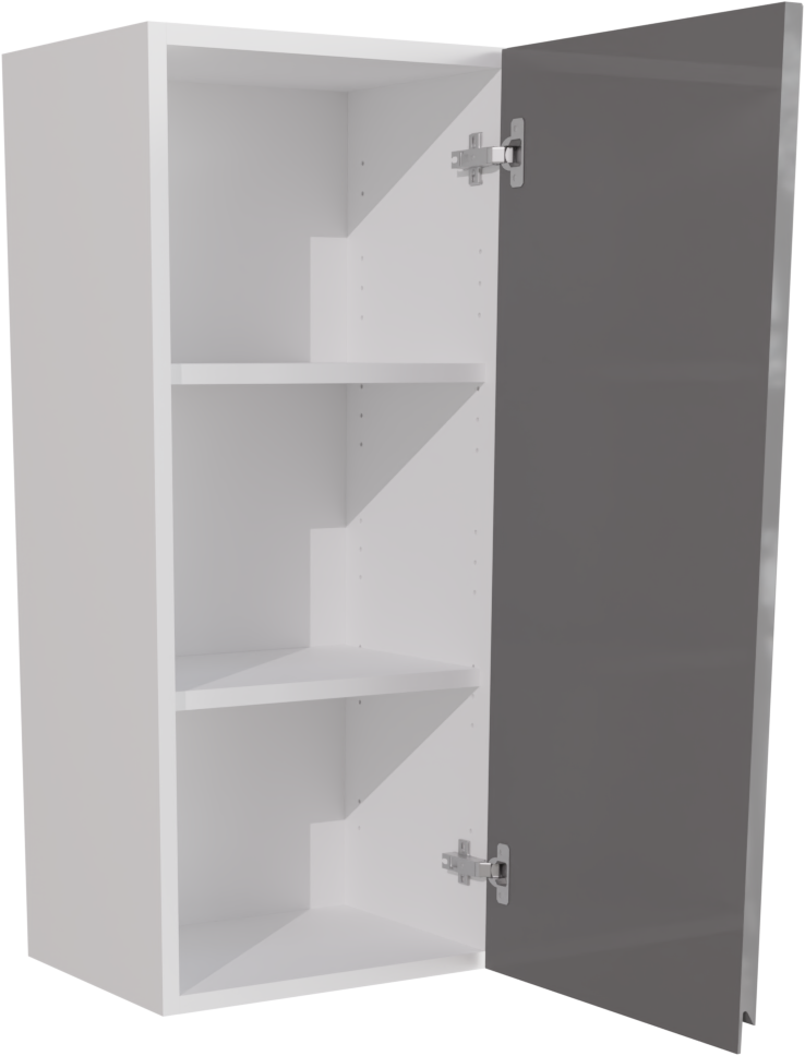 This is a 400mm handleless, high gloss dust grey tall kitchen wall unit(900mm high). It is a matt tall kitchen wall unit with a high gloss jayline dust grey door. This listing includes the following parts:
