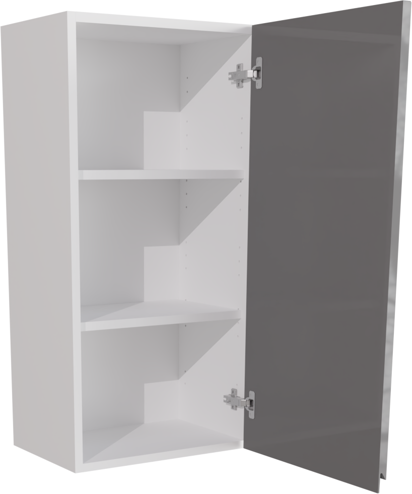 This is a 450mm handleless, high gloss dust grey tall kitchen wall unit(900mm high). It consists of a 450mm x 900mm high tall kitchen cabinet and a high gloss jayline dust grey door. Each unit includes the following: