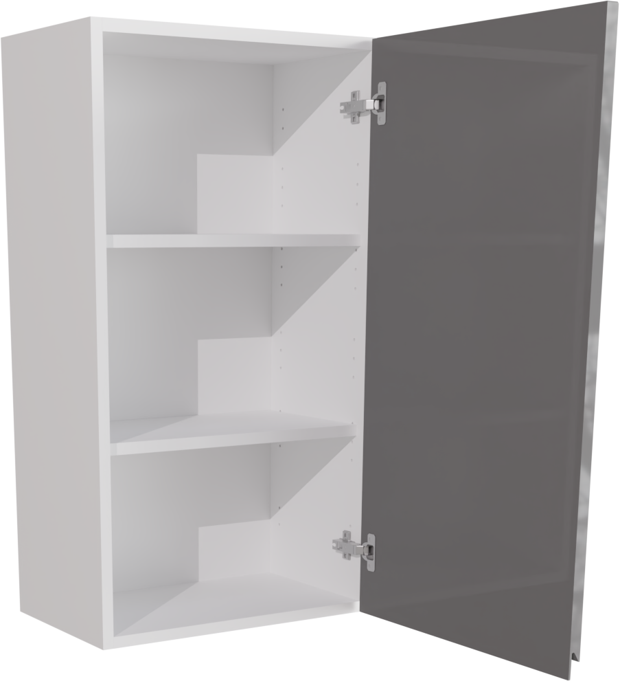 This is a 500mm handleless, high gloss dust grey tall kitchen wall unit(900mm high) from BA. It is a tall matt kitchen wall cabinet with a high gloss jayline dust grey kitchen door. This unit includes the following parts: