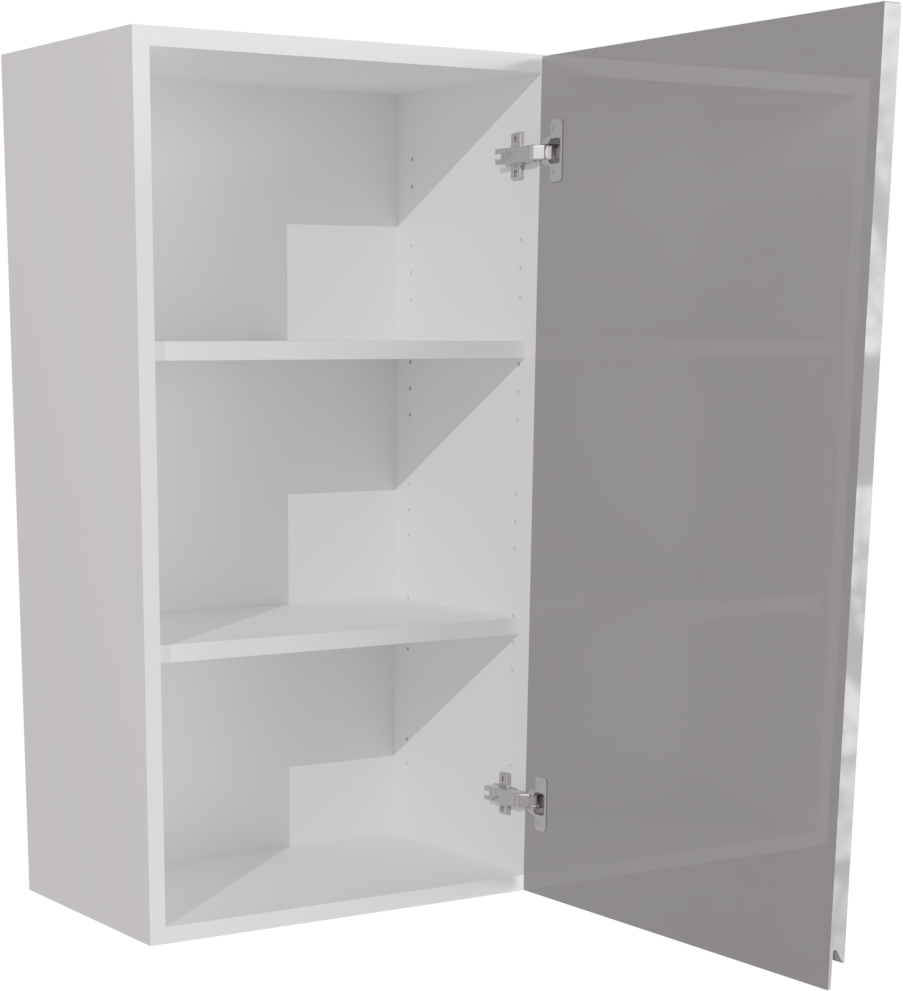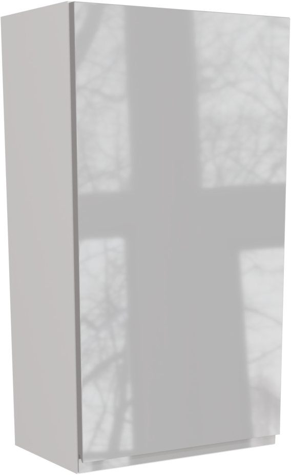 This is a 500mm handleless, high gloss light grey tall kitchen wall unit(900mm high) from BA. It is a tall matt kitchen wall cabinet with a high gloss jayline light grey kitchen door. This unit includes the following parts: