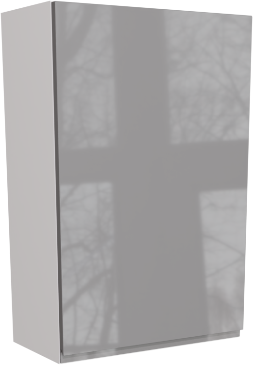 This is a 600mm handleless, high gloss dust grey tall wall unit(900mm high). It consists of a matt tall kitchen wall unit and a high gloss jayline dust grey door. This unit includes the following parts: