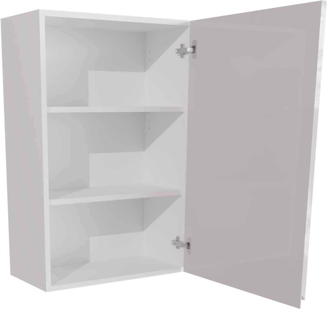 This is a 600mm handleless, high gloss white tall wall unit(900mm high). It consists of a matt tall kitchen wall unit and a high gloss jayline white door. This unit includes the following parts: